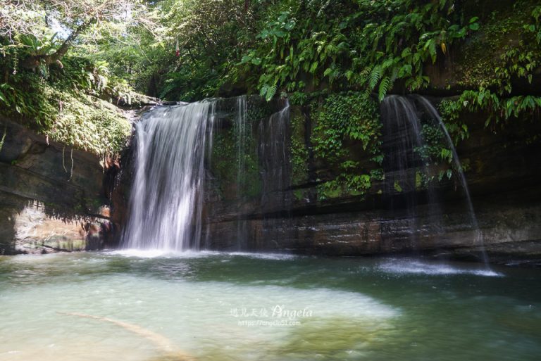 走下望古賞瀑步道,轉個彎就看到瀑布的身影了。Angela 是第一次來,這望古瀑布也太容易抵達了吧,從停好車走到瀑布區不到10分鐘就達陣了。好輕鬆愉快的行程,哈哈~