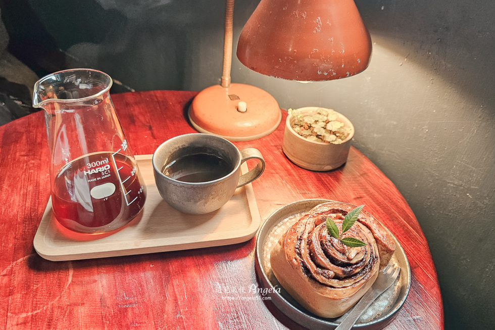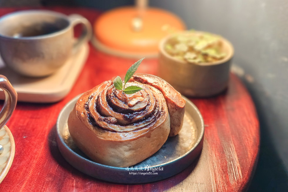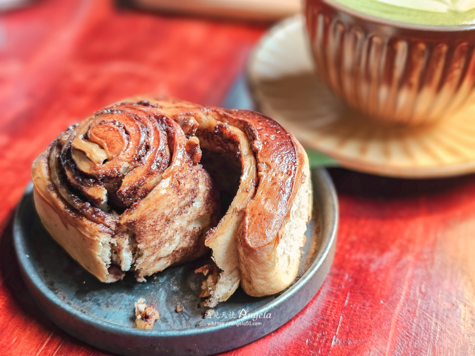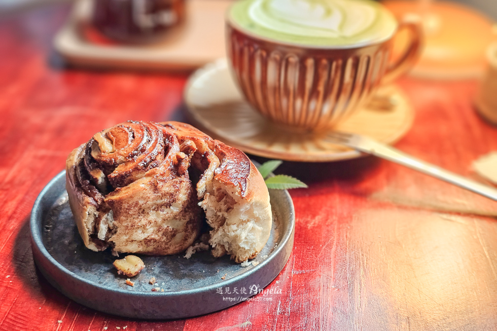 甜點選了肉桂捲,渦窩山房的肉桂捲肉桂味道溫和,口感外層微酥。這裡的肉桂捲是屬於比較偏向麵包型態的口感,中規中矩。