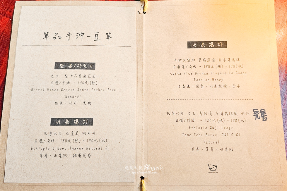 渦窩山房菜單很簡單,基本上就是咖啡或無咖啡因之飲品,有時會有每日限定甜點,可以詢問店家當天的品項。