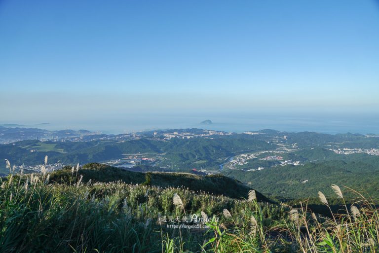 看著遠方的基隆嶼與側邊的群峰,秋高季節在迎風面的滿山芒草隨風陣陣搖擺,這景色太美了! 看著搖擺的芒花,心情很舒暢。