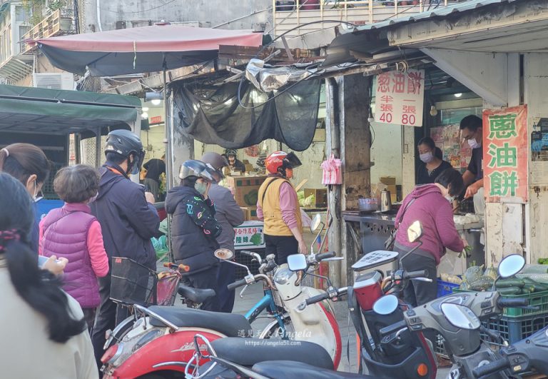 每到下午時間,建國黃昏市場總是有不少美食可以覓食。這家蔥油餅,老實說我已經知道它有 10 年之久,每次來黃昏市場買菜,總是會看到有人排隊。這幾年排隊人潮更是多,最近帶著好奇心,加上當天來的早,前面只有 3 人排隊等待,那就來買個半張蔥油餅吃看看味道如何?