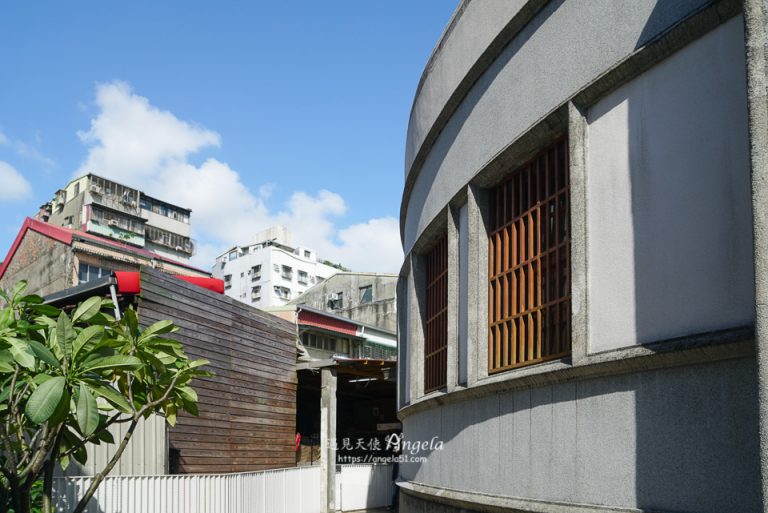 其中藏身在馬蹄形建築設計的中央之處,打開小門進入天井。藍色天空下的天井,這裡是新富町文化市場網美必拍之處,洗石子的牆面還有那天空的馬蹄,簡單的畫面營造出來的氣氛很有文青風。