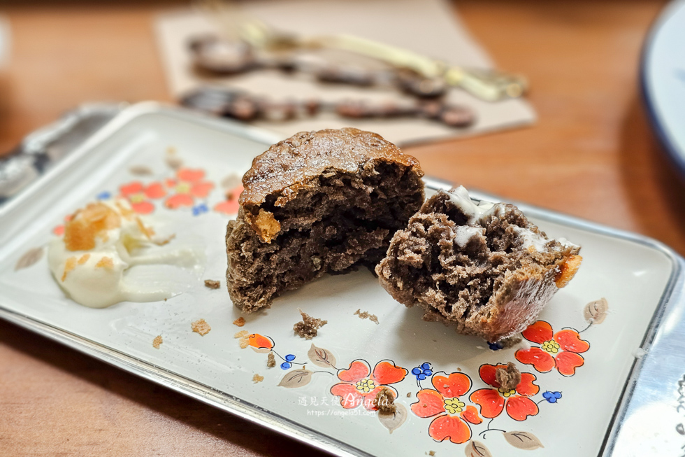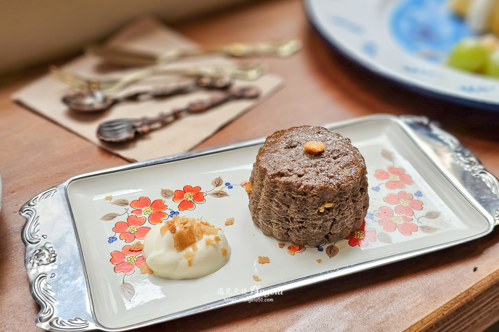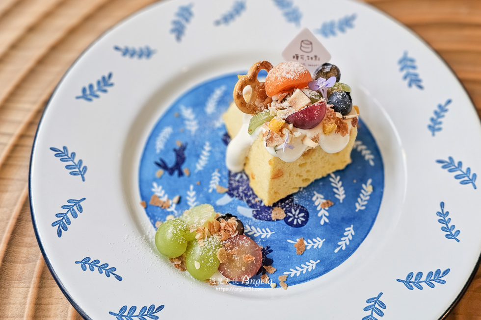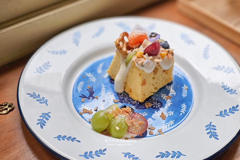 水果戚風蛋糕,當天的戚風蛋糕體是柑橘風味,軟綿中還可以吃到柑橘的顆粒。戚風上面點綴的水果鮮甜,搭配不會膩口的好吃鮮奶油,味蕾層次感受很豐富。另外,店家的餐具也滿有特色的,看看這可愛復古的小湯匙,會讓人也想買回家用XDD。