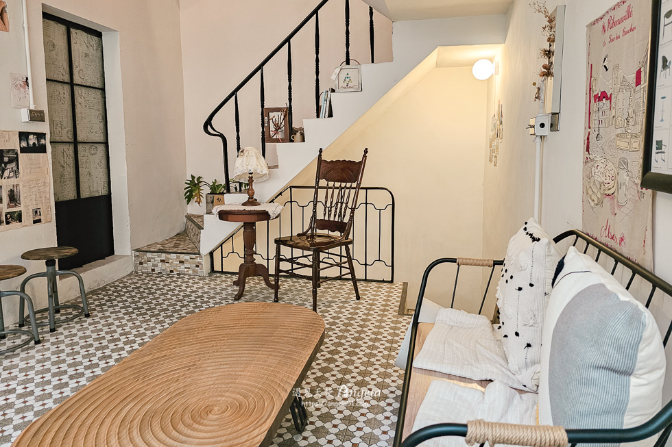 走上二樓,老宅的復古花地磚被保留下來,室內陳設風格帶點歐式鄉村的風情,再搭配中式的復古木窗戶,整個空間氛圍優美又典雅的讓人喜歡。