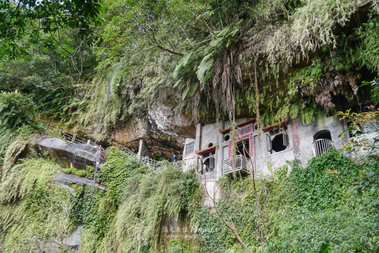 帶著有點喘息的腳步,在看到這幕清幽山壁的古寺與瀑布景色時,心情立即開闊起來,顧不得雙腳還有點酸、呼吸還有點喘。馬上拿起相機按了好幾下快門,這畫面真如仙境般的清幽自在呀。