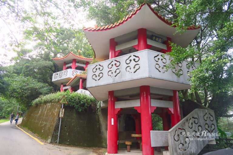 走過鳶山停車場,再往裡面的小徑走可以看到鳶山聖蹟牌坊,附近還有一個小涼亭。
